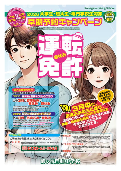 《通学免許》2026年 夏休み短期取得プラン 早期予約キャンペーンのご案内