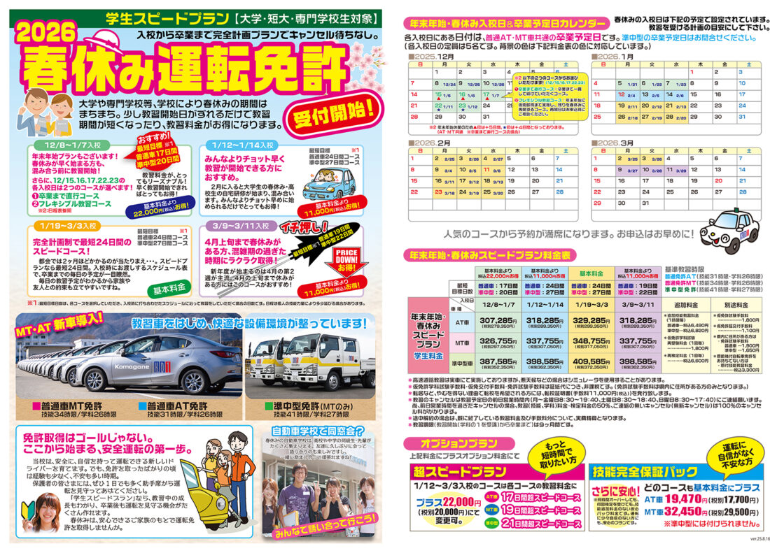 《通学免許》年末年始・春休みスピードプラン